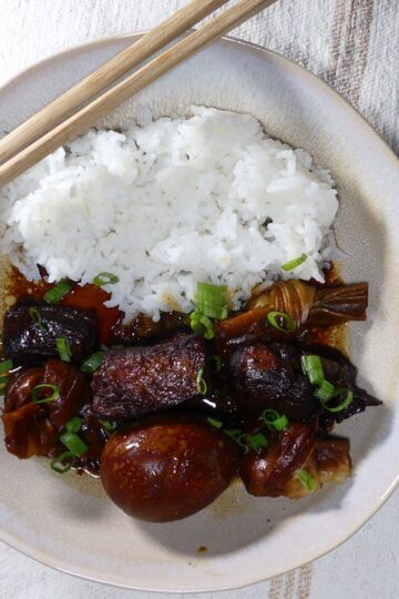 Rotgeschmorter Schweinebauch war bekanntermaßen Mao Zedongs Lieblingsessen, und das ist dann tatsächlich etwas, das ich mit ihm gemeinsam habe. Die leicht scharfe Hunan-Variante habe ich vor langer Zeit hier verbloggt und sie steht bei uns regelmäßig auf dem Tisch. Und jetzt gibt es eine neue Variante, die uns ebenso gut gefällt. Das Grundprinzip ist das […]