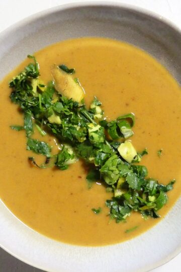 Süßkartoffelbisque mit Avocado-Salsa