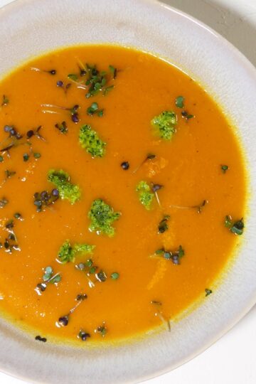 Karotten-Blutorangensuppe mit Pesto-Topping