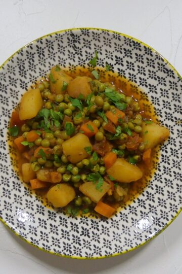 Yiahni: Geschmorte Erbsen mit Karotten und Kartoffeln