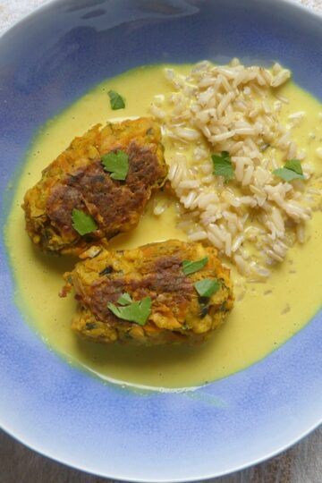 Zucchini-Karotten-Kufta in Kokos-Currysauce