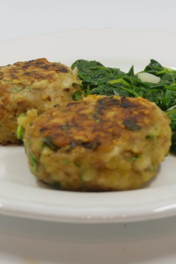 Allgäuer Kartoffelküchle mit sautiertem Rucola und Spinat