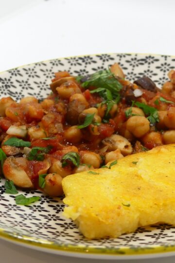 Kichererbsen-Puttanesca mit Polenta-Schnitten