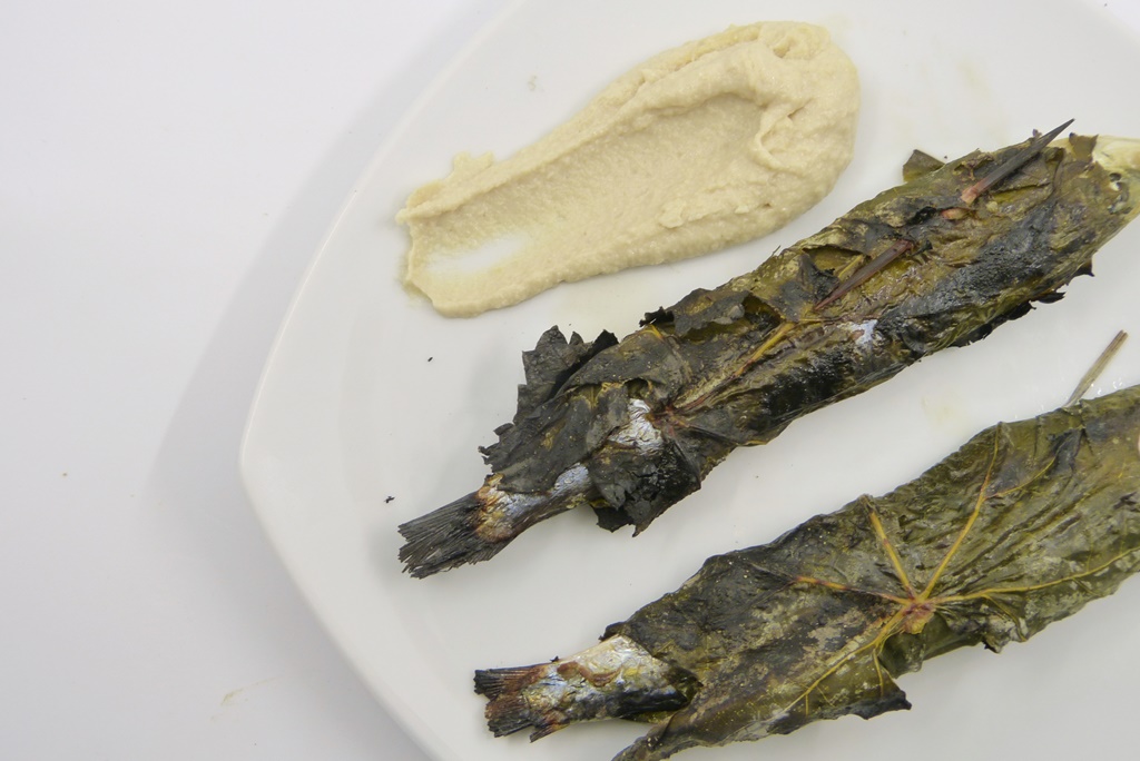 Sardinen, im Weinblatt geggrillt mit Sesam-Zitronensauce