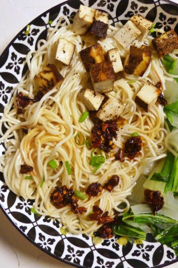 Heute gibt es ein ganz schnelles Essen, das absolut nichts vermissen läßt. Den Tofu muss man vorbereiten, aber wenn man das hat, steht in 10 Minuten eine Mahlzeit auf dem Tisch, das nicht nur reichlich Geschmack hat, sondern auch richtig ausgewogen ist. Es wird kurz eine Sauce in der Servierschale angerührt, Nudeln werden gekocht, Blattgrün […]