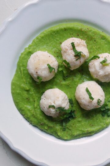 Ricotta-Gnocchi auf Erbsencreme