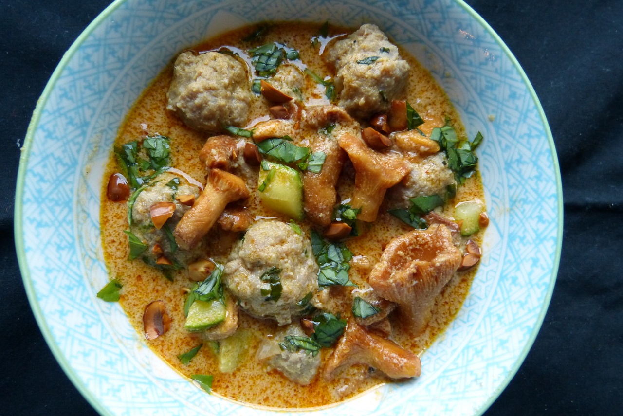 Meatball-Erdnusscurry mit Pfifferlingen