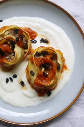 Solche hübschen, rosenförmigen Teigtaschen standen schon recht lange auf meiner Liste. Die Rezension von „Mantı, Gyoza, Dumplings & Co„* habe ich genutzt, um das nun endlich mal auszuprobieren. Und bestimmt nicht zum letzten Mal, denn die Teigtaschen sind gar nicht schwer herzustellen und haben uns richtig gut geschmeckt. Hier sind sie mit Hackfleisch gefüllt und […]