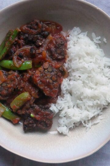 Ich hatte ja auch noch Tempeh aus schwarzen Bohnen gemacht, und auch dieser ist wieder in einem indonesischem Gericht gelandet; in seinem natürlichen Habitat schmeckt mir Tempeh doch am besten. Sambal Tempeh Goreng ist ein indonesischer Klassiker: das Rezept basiert auf einem frischen Sambal, einer Tomaten-Chilisauce, die dann nicht nur zum schnellen Abschmecken und Würzen […]