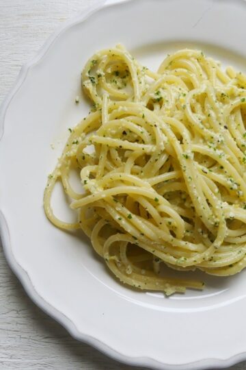 Dieses Rezept der Pasta Grannies* kommt aus Procida, einer kleinen Insel vor Neapel. Adriana, von der das Rezept stammt erinnert sich, dass ihre Mutter es immer im Winter zubereitete, wenn die Zitronen reif waren. Und man hat Pinienkerne aus selbst geernteten Pinienzapfen verwendet; die Kerne wurden im Ofen getrocknet. Als Kräuter werden Petersilie und Minze […]