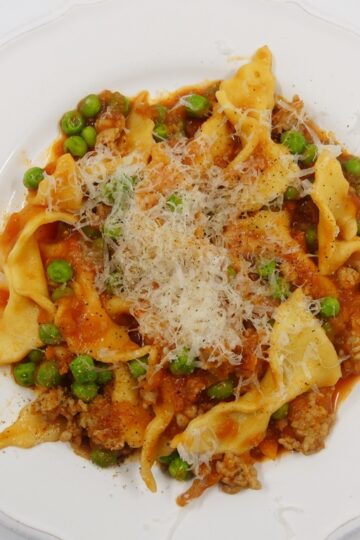 Schmetterlingsnudeln mit Wurst und Erbsen aus der Romagna