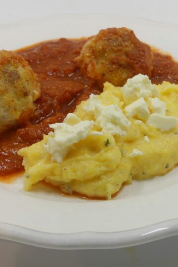Fischbällchen in Tomatensauce mit huzulischer Polenta