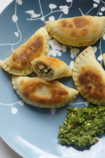 Sambose – Knusprige Teigtaschen mit Mungbohnenfüllung und Korianderchutney