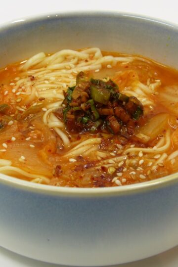 Das ist Nudelsuppe mit Kimchi – echtes Comfort-Food, finde ich. So sieht das auch Joanne Lee Molinaro, aus deren veganen koreanischen Kochbuch* das Rezept stammt. Die Suppe ist herzhaft und wohltuend – und sie steht im Handumdrehen auf dem Tisch – das ist eine tolle Kombination, wenn man leicht angeschlagen ist. Ich habe die Suppe […]