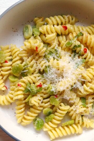 One-Pot-Pasta mit dicken Bohnen und Minze