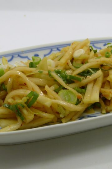 Man denkt bei Kohlrabi nicht unbedingt an chinesische Küche – sollte man aber hin und wieder. Tatsächlich gibt es den in manchen Regionen Chinas, und im Gegensatz zu dem profanen Namen, den er hierzulande hat, heißt er dort „Jaderübe“, weil das Fruchtfleisch so herrlich grünlich leuchtet. Sagt jedenfalls Fuchsia Dunlop, von der ich das Rezept […]