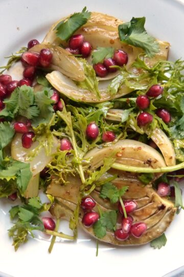 Salat aus geröstetem Fenchel mit Granatapfel und Koriander