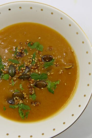 Rauchige Süßkartoffelsuppe mit gerösteten Paprika-Saaten