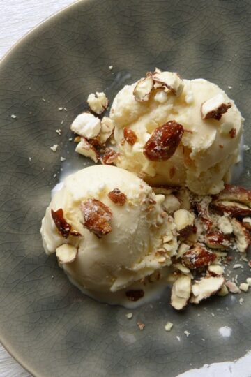 Tonka-Mandel-Eis mit gecrushten gebrannten Mandeln