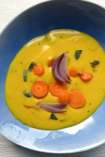Die indische Küche zählt ja zu meinen Favoriten, aber diese Art von Curry war mir total neu. Das ist ein sehr schlichtes Rezept; die Grundmasse besteht einfach aus Joghurt, das mit Kichererbsenmehl und Wasser verrührt und dann gegart wird. Beim Garen dickt die Masse an und bekommt eine Konsistenz irgendw zwischen Suppe und Brei – […]