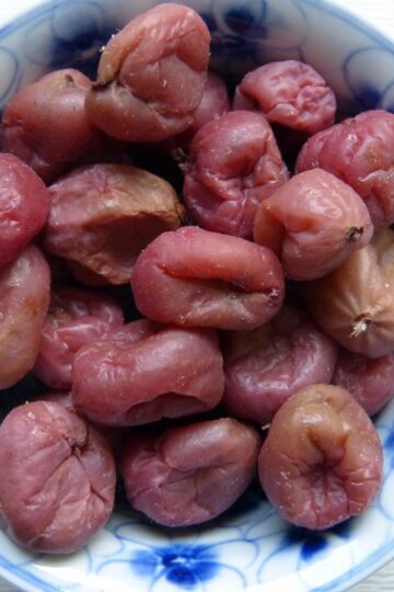 Ich liebe Umeboshi, das sind fermentierte japanische Ume-Pflaumen; sie sind sehr sauer und salzig und wunderbar erfrischend. In Japan isst man sie gerne schon zum Frühstück zur Miso-Suppe – danach ist man bestimmt wach ;-). Übrigens haben sie auch eine antibakterielle Wirkung und helfen gegen Halsschmerzen. Umeboshi kann man im Asiashop oder Bioladen kaufen, aber […]