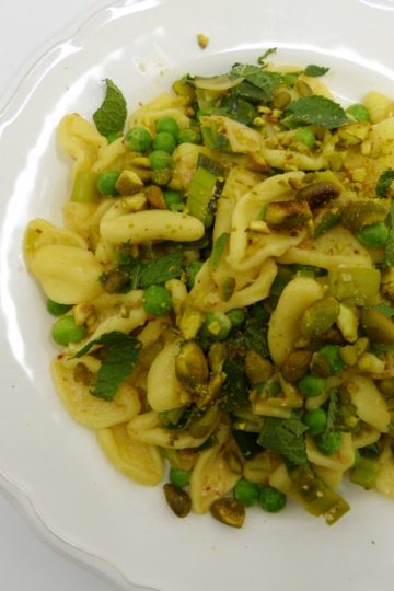 Orecchiette mit Buttermilch, Pistazien und Erbsen