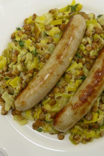 Lauchlinsen im Thymianrahm