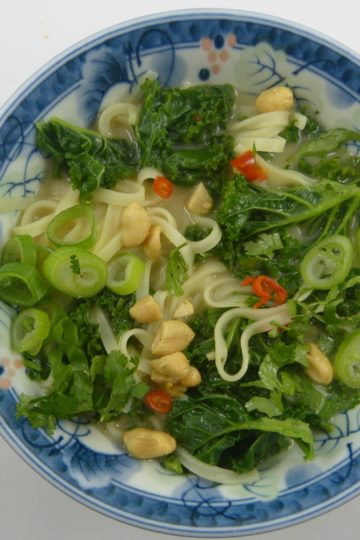 Grünkohl asiatisch mit Reisbandnudeln und Kokossauce