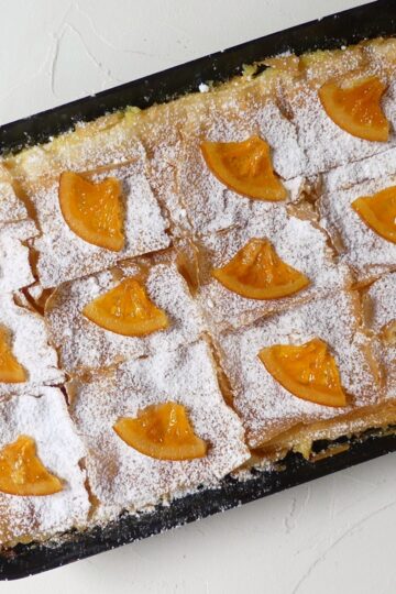 Bougatsa ist ein beliebter griechischer Nachtisch: knusprig gebackener Filoteig, der mit einem cremigen Grießpudding gefüllt ist. Dieses Rezept hier aus „Kaliméra„* hat einen reizvollen Twist – die Cremefüllung ist zusätzlich mit Orangenschale aromatisiert, das gibt ein schönes Aroma. Mir gefällt außerdem, dass die Bougasta nicht zu süß ist. Bougatsa kann man zur nachmittäglichen Tasse Kaffee […]