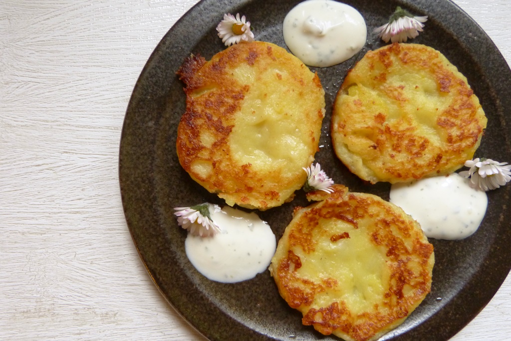Einen Beitrag habe ich noch für die kulinarische Weltreise, die ja diesen Monat nach Frankreich führt. Ich hatte doch beschlossen, mich da auf die Bretagne festzulegen – und deshalb gibt es jetzt noch diese Kartoffelplätzchen mit Käse.