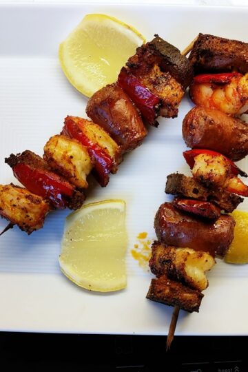 Kommen wir zu Dietmars zweiten Lieblingsrezept aus Jamie Olivers Airfryer-Kochbuch* – es gibt Spieße, eine Sache, um die ich mich ja immer tunlichst drücke. Warum weiß ich nicht, denn das hier ist ein Rezept, das tatsächlich gästetauglich ist und rasch auf dem Tisch steht. Auf den Spießen landen neben Garnelen noch Sauerteigbrot, Chorizo und geröstete […]