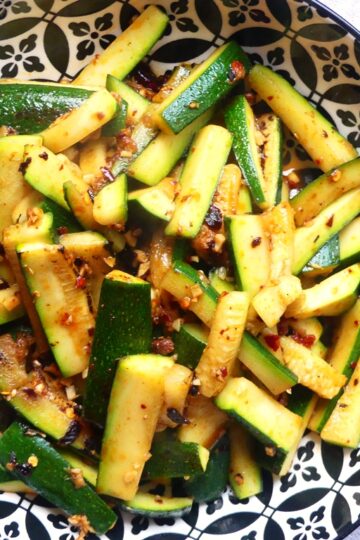 Ich habe noch ein ganz fixes Zucchini-Rezept für Euch: pfannengerührte Zucchini in einer würzigen Sauce mit Knoblauch, Essig und Chili Crisp. Das Ganze steht wirklich fix auf dem Tisch. Ihr könnt das als Beilage zu einem größeren Essen servieren oder als eigenständige, leichte Mahlzeit mit Reis. Die Idee habe ich aus einem Buch über Rezepte […]