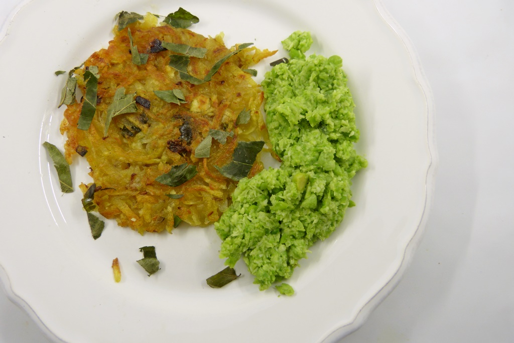 Kartoffel-„Dosas“ mit Erbsen-Kokos-Chutney