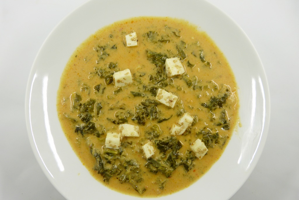 Erdnusssuppe mit Grünkohl und Sesam-Halloumi