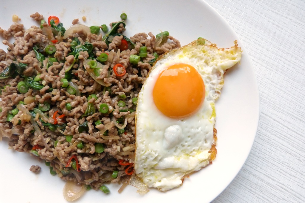 Dieses Gericht aus Andy Rickers „Pok Pok“* kommt aus der Kategorie der Tellergerichte – der Teller ist also eine Mahlzeit für sich. In Bangkok ist es ein klassisches Streetfood, das von sogenannten Curry-über-Reis-Läden verkauft wird; man isst es gerne zum Frühstück; es ist aber auch mittags und abends beliebt. Die wichtigste Zutat ist das scharfe […]