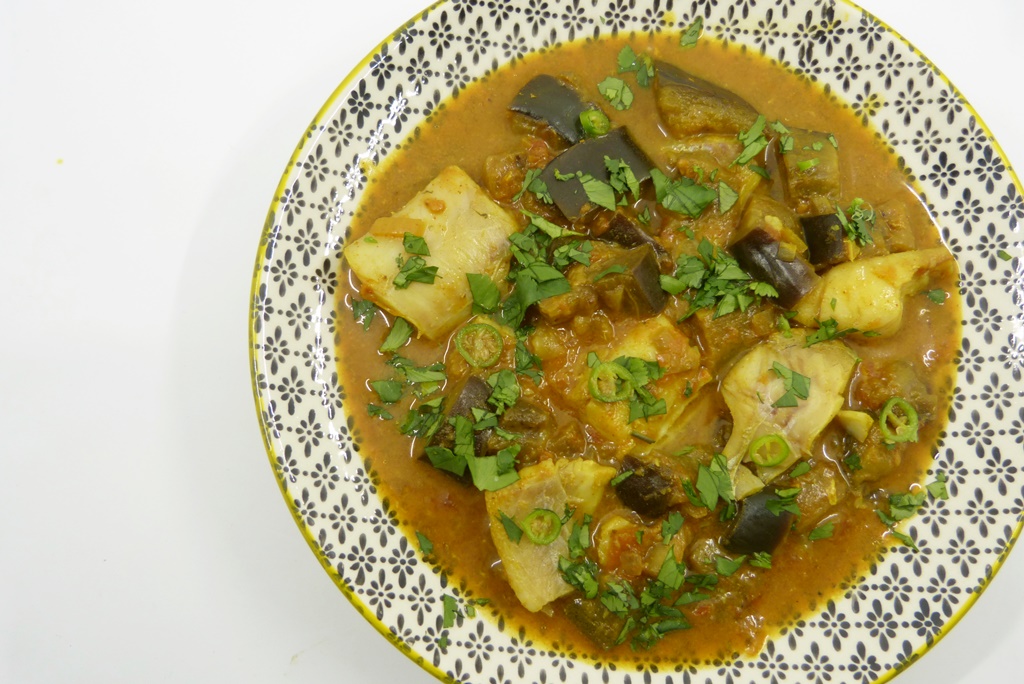 Fischcurry mit Auberginen