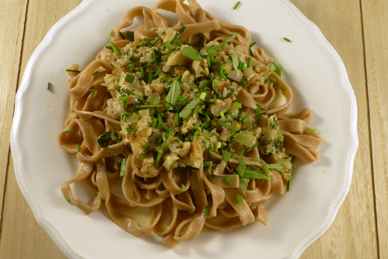Kastaniennudeln mit Nuss-Käse-Sauce
