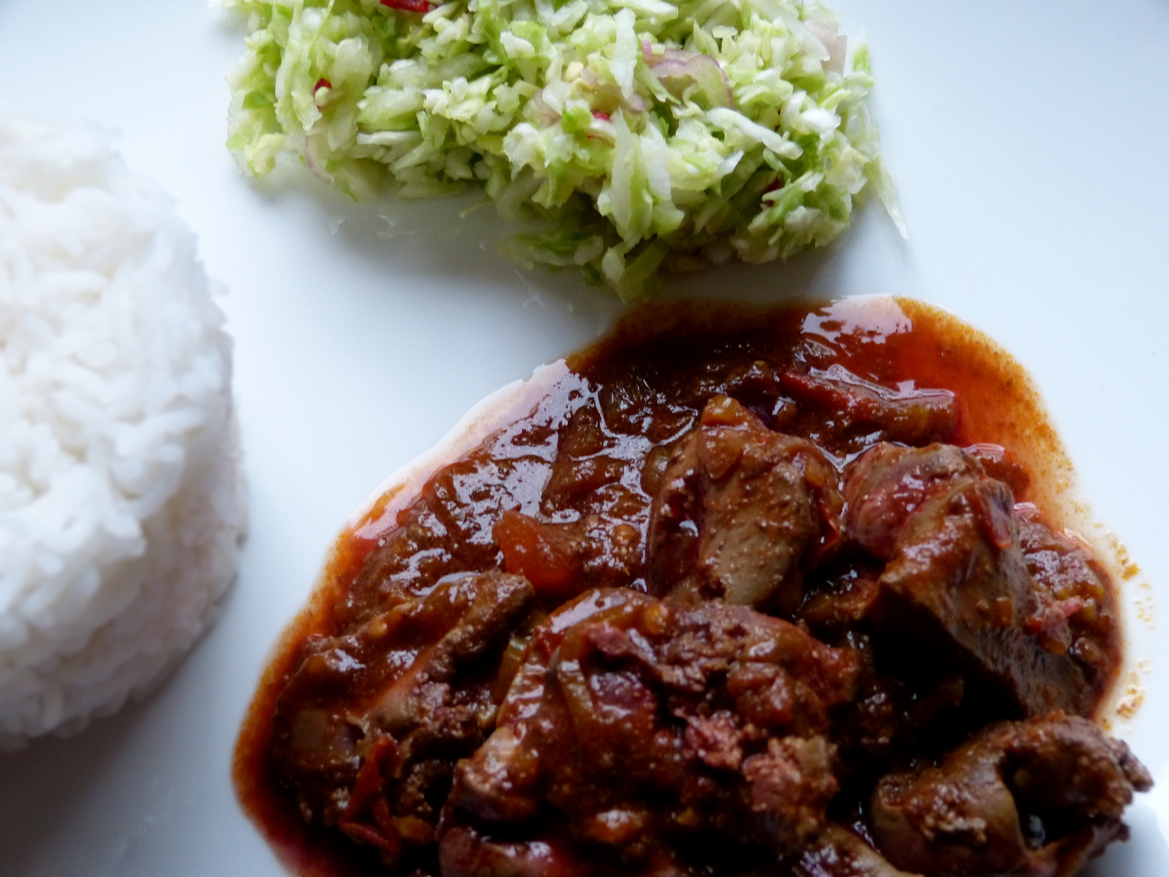 Burmesisches Curry aus Hühnerlebern mit erfrischendem Kohl-Salat