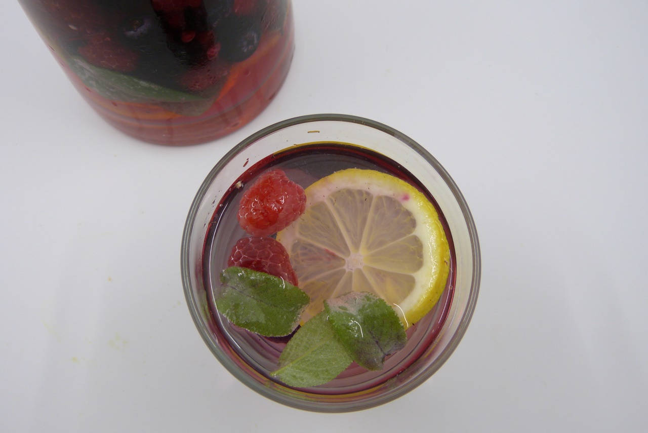 Aromawasser mit roten Früchten, Zitrone und Salbei