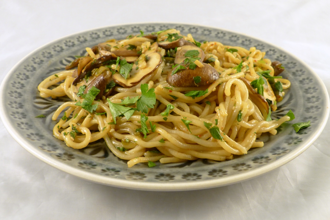 Buchweizenspaghetti mit würzigen Sesampilzen