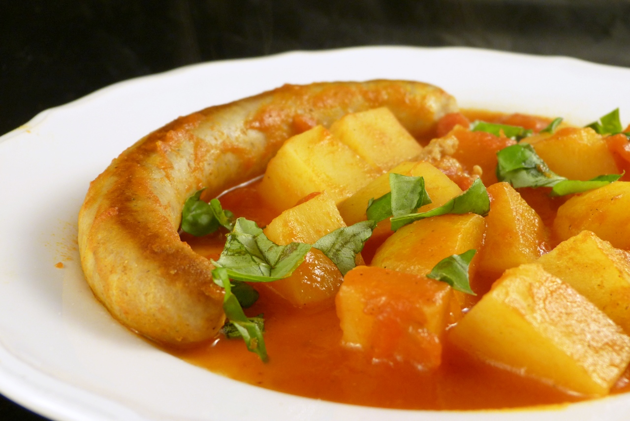 Bratwurst in Tomatensauce mit Kartoffeln