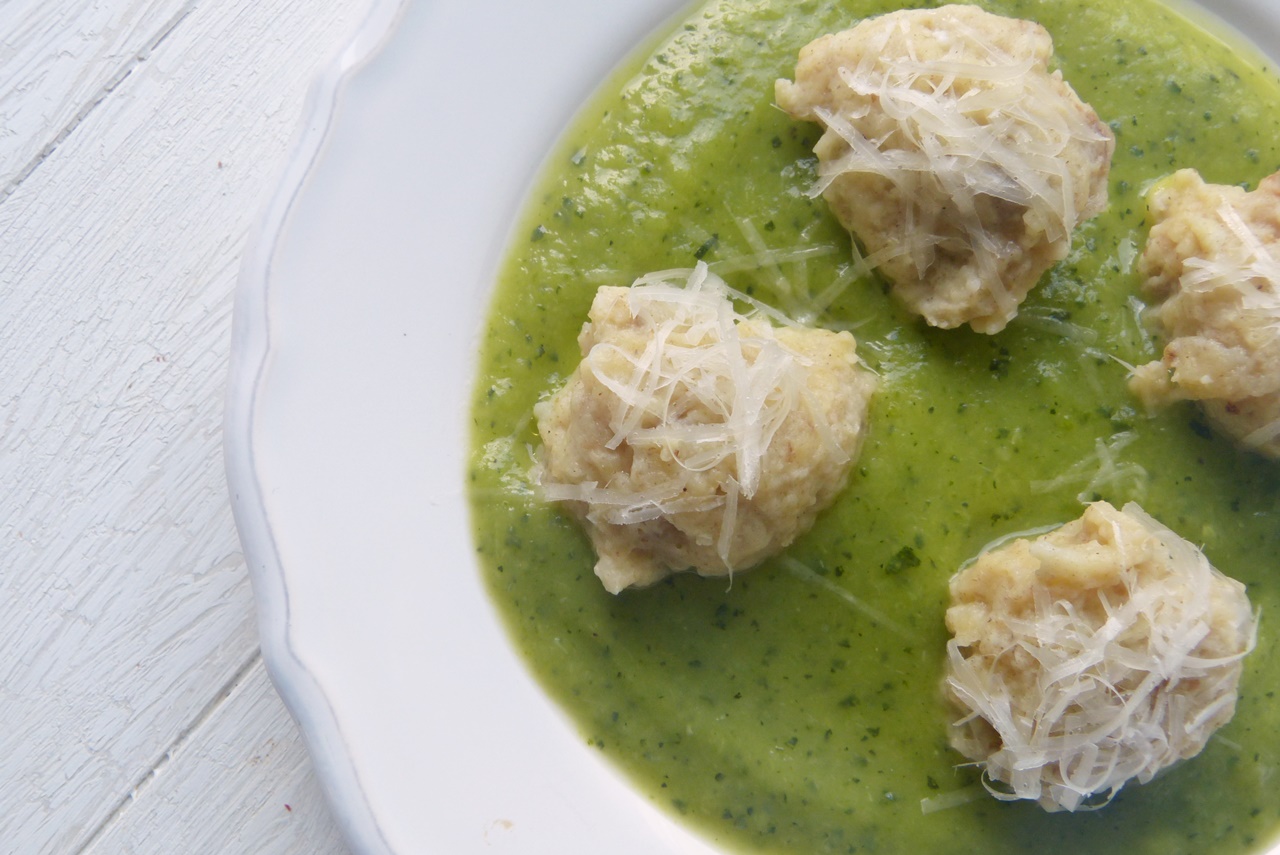 Brot-Gnocchi auf Zucchini-Creme